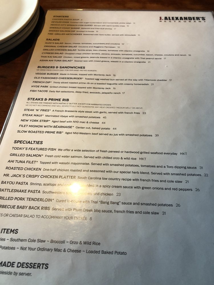 J. Alexander's Restaurant Cincinnati Menu (Update 2025)
